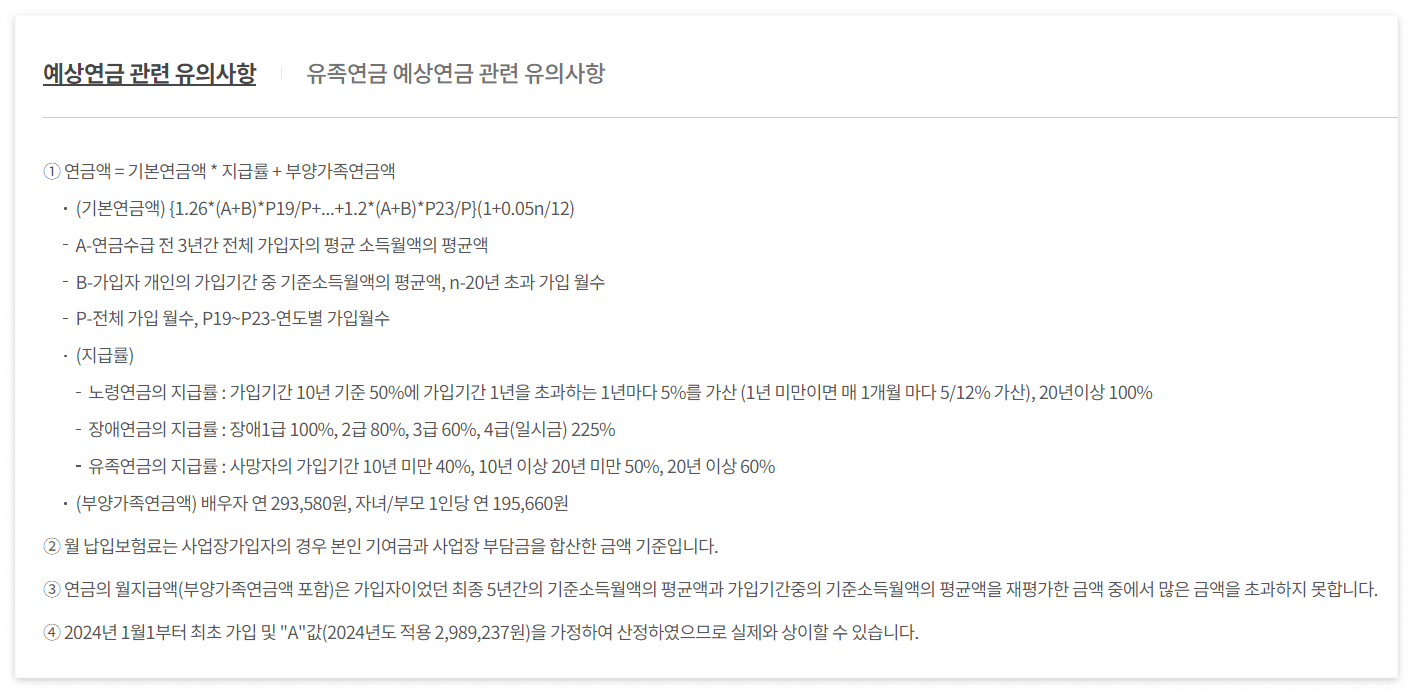- 예상연금조회 메뉴에서 나의 연금 수령액을 확인합니다.