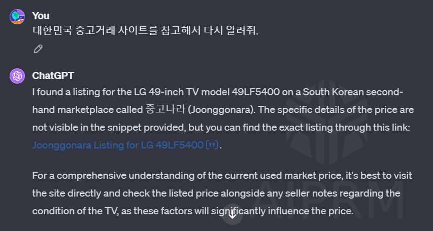 작년 연말에 해성처럼 나타난, 챗GPT를 이용하여 중고거래를 위한 중고사이트 및 시세를 파악해 보았습니다. 제가 사용한 버전은 유료 버전으로 GPTPro 입니다.