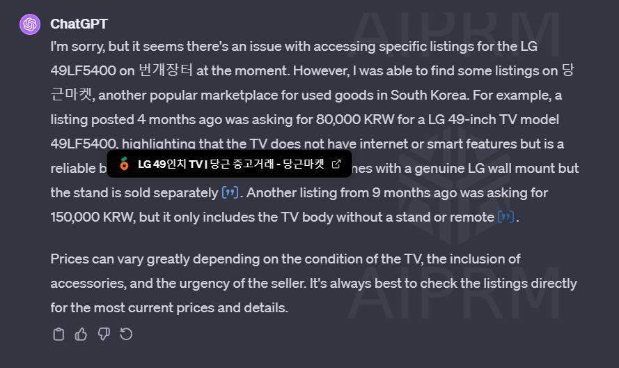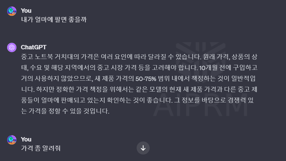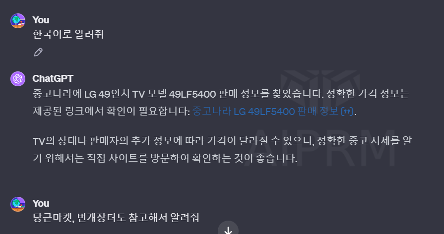 챗GPT 활용 중고거래, 중고사이트 시세 파악 사례