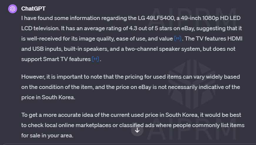 LG전자 중고TV를 판매하고자 챗GPT에게 물어보았습니다. 제조년월은 2015년 7월입니다.